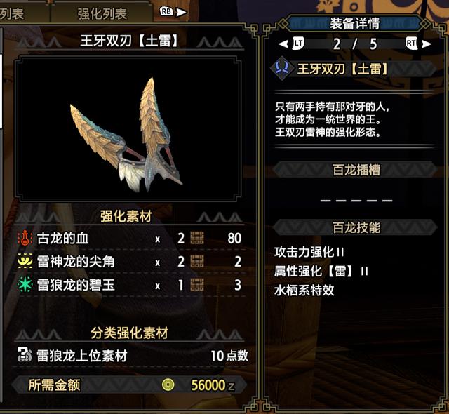 百龙技能方面个人推荐属性强化【雷】,既然是打属性,那肯定优先提高属性更有优势。