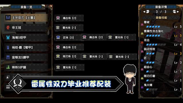 本期主要争对雷系双刀的一套配装,不按装护石的情况下给大家分享下个人的配装心得。同时会在后面给大家推荐相关属性的护石搭配。