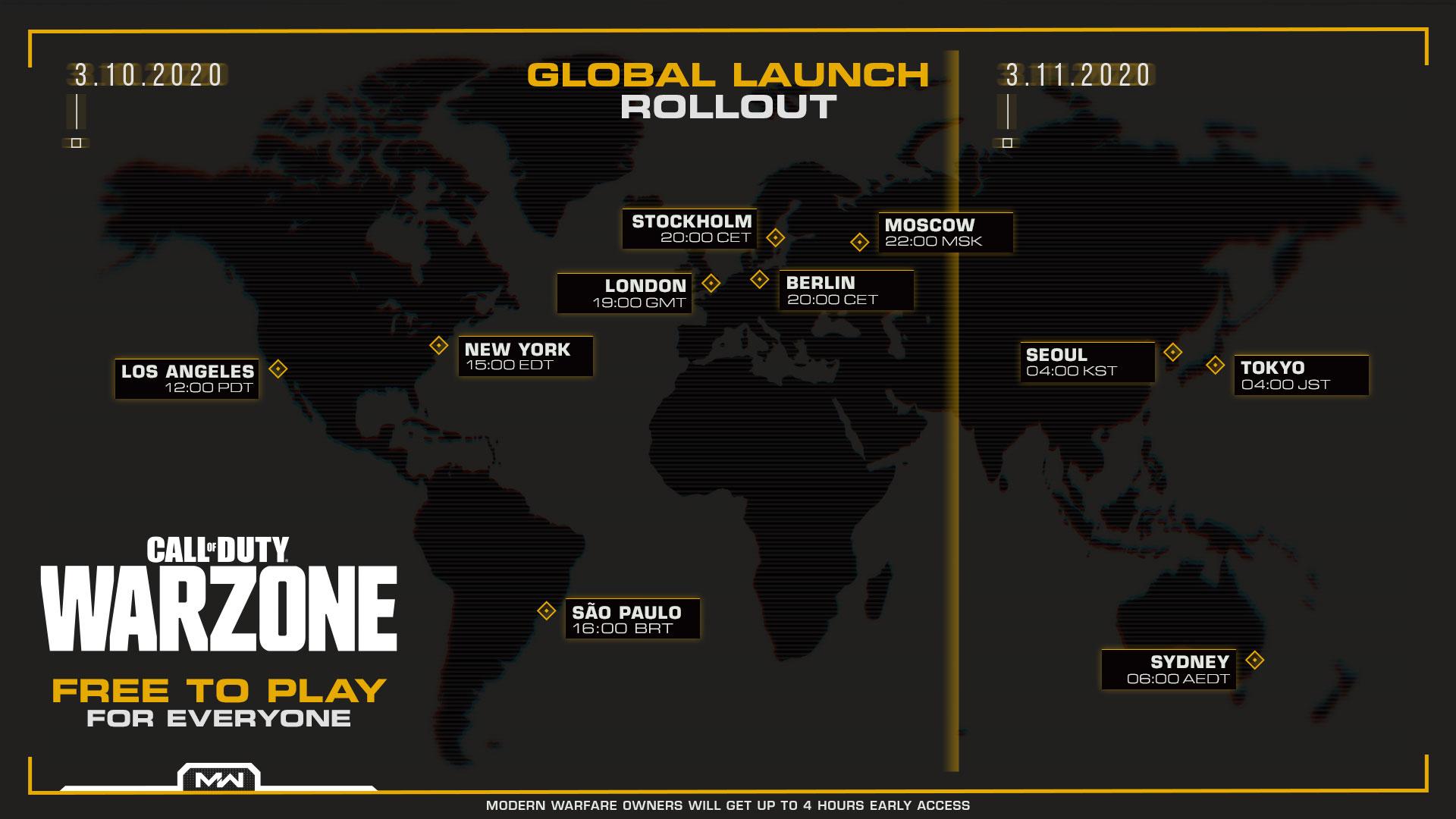 游戏将于北京时间3月11日凌晨3点上线,届时《使命召唤:现代战争》的客户端更新大小在18~22GB左右,对于免费玩家,它提供独立客户端,大小在83~101GB左右。如果已经拥有《使命召唤:现代战争》,那么在战区中你的游戏进度将会被同步,所有在其他模式已经解锁的项目均可使用,包括战争通行证、干员、武器和自定义项目都会被带入到战区中。