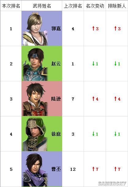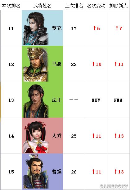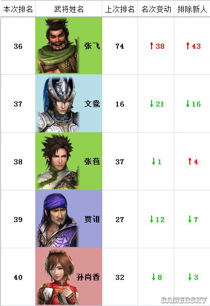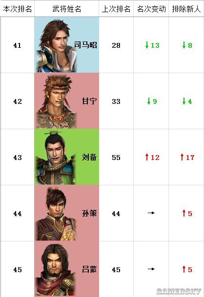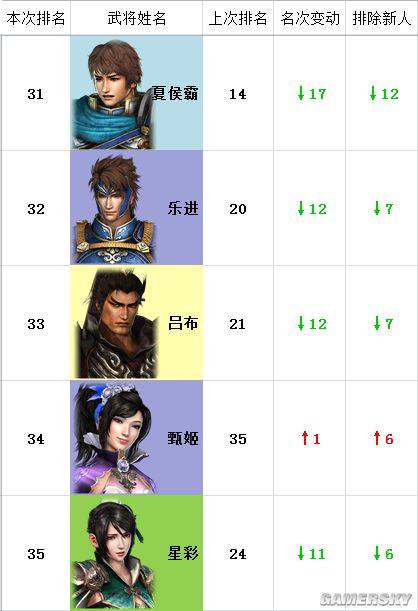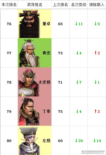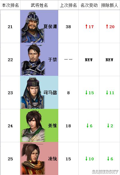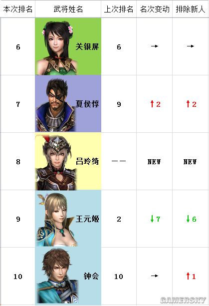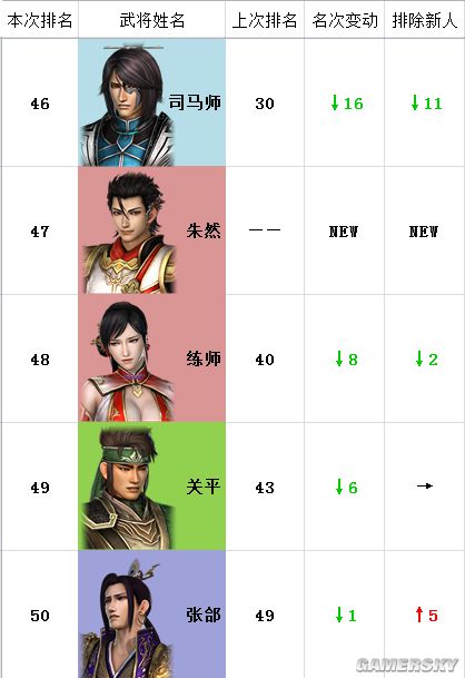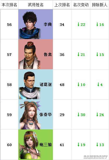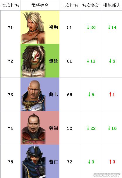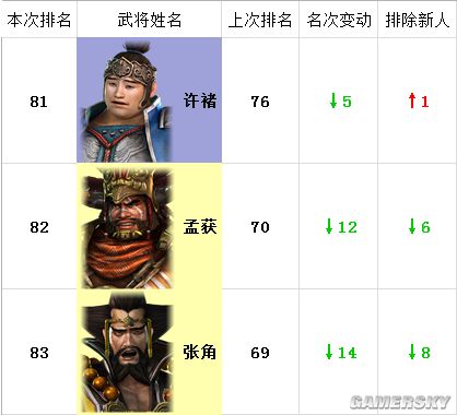 注:“本次排名”为猛将传,“上次排名”为本传,“名次变动”为名次两相对比。
