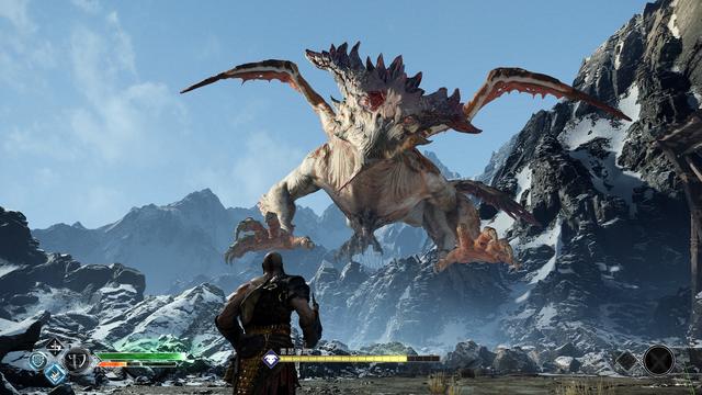 就算抛开具体装备和技能不说,《战神4》的战斗也是核心卖点,首先本作采用的越肩视角,显然可以更加近距离和清晰观察人物动作,从而精确做出反应和操作,唯一就是背后会存在视野盲区,即便有对应方向和不同颜色的箭头来提示敌人攻击来袭,快速转身的设计就是为了解决该问题,但是对于硬核这种普通玩家来说,尤其面对行动迅速的敌人,你可能会感受到视觉疲劳和手忙脚乱,和传统的ACT视角相比只能说各有利弊吧。