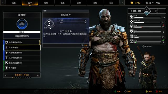 像主流RPG游戏一样,《战神4》中的装备也分为不同颜色品质,以便区别稀有度,不同属性的装备有着不同的战斗风格,奎爷的装备部位分为两种武器、胸甲、腕甲、腰甲以及护身符(盾牌就是装饰作用),其中胸甲、腕甲、腰甲拥有咒术插槽,护身符也是增强战斗力的方式,咒术插槽、护身符既有被动和主动属性可选,除了武器之外都有不同品质属性,所以深究程度是有的,而阿特柔斯本身就是辅助战斗的,装备内容会少很多。