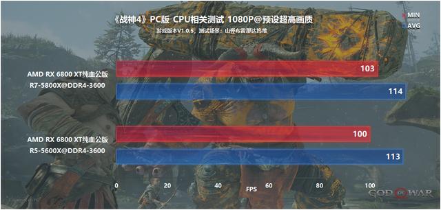 结果很明显,5800X和5600X搭配RX 6800 XT帧数表现几乎一致,《战神4》就是不怎么依赖CPU性能,只要一颗目前主流千元CPU就足够带动高端显卡,CPU部分就不多展开说了。