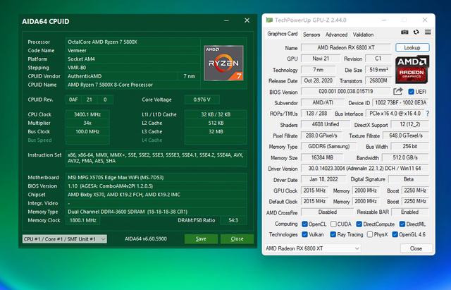 R7 5800X+RX 6800 XT跑1440P预设超高画质OSD硬件情况
