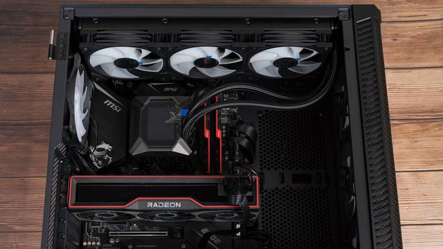 本次测试的其他配置,CPU是AMD Ryzen 7 5800X,使用微星CORELIQUID 寒霜K360完美压制,微星X570S EDGE MAX WIFI刀锋主板搭配两根芝奇Tridentz DDR4 3600 8GBX2内存,微星VELOX 100R刀锋机箱拥有前置三把120CM+后置一把120CM的风扇组合,风扇位都装满了。