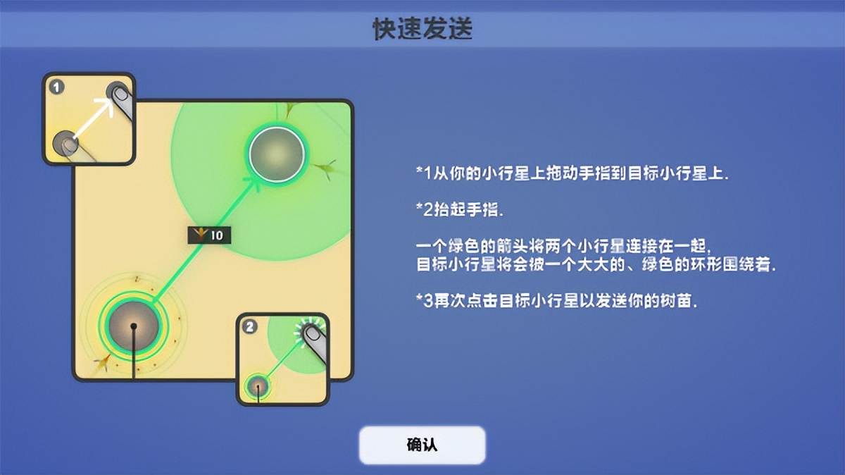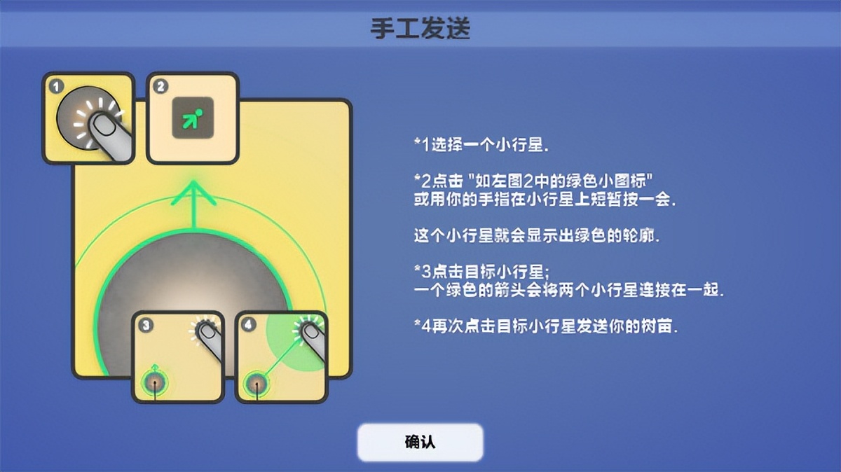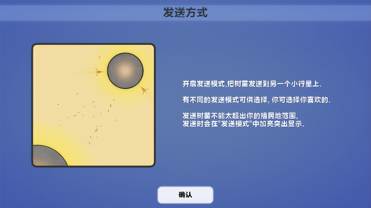 开启发送模式,把树苗发送到另一个小行星上。