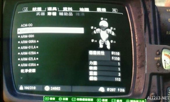 2.那麼既然骨架沒有什麼區別, 衡量动力甲性能的部分就是上面的裝甲部件了. 與以往不一樣的是, 本代輻射的動力裝甲部件大部分都是依賴於玩家等級來出現的. 某一個地點出現骨架是固定的, 但是裝甲部件的種類不固定, 也就是說你等級不同, 這個裝甲刷出來的部件也不同. 我稱之為"等級甲“