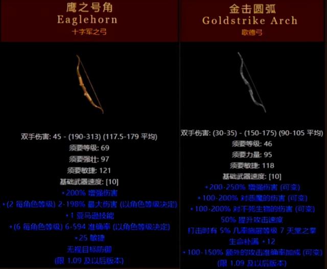 鹰之号角的属性也是很不错的,高额的ed,较高的最大伤害加成,以及1级的亚马逊全技能和25敏捷。但问题在于他是精英级的弓,与风之力相比就逊色不少。所以只能作为平民玩家的无奈之选。