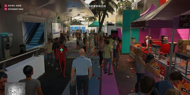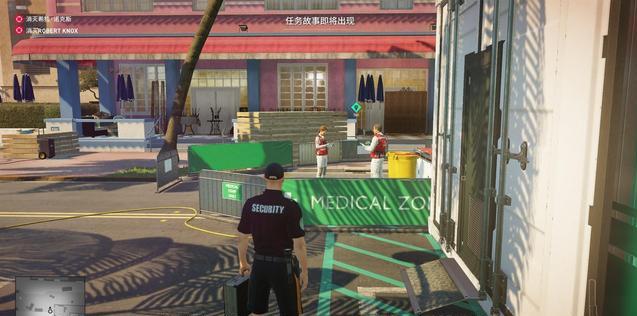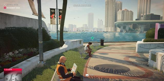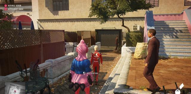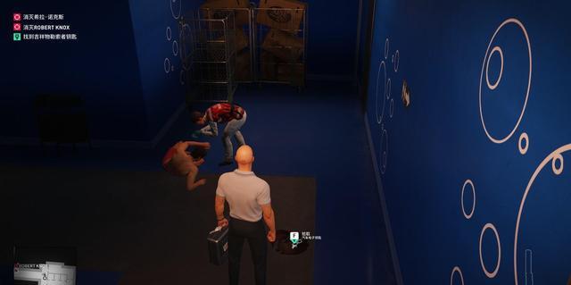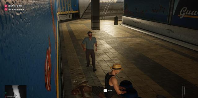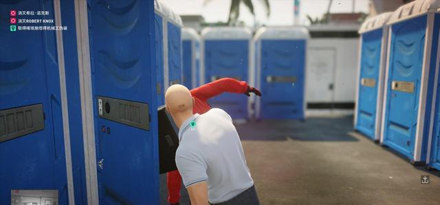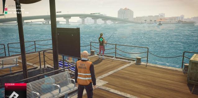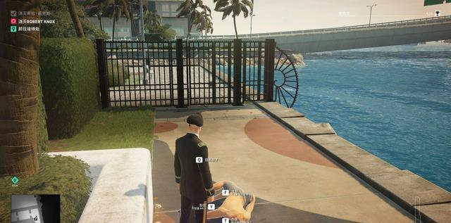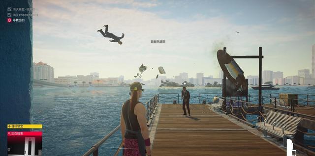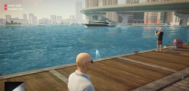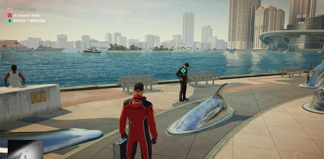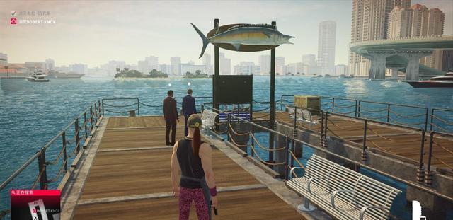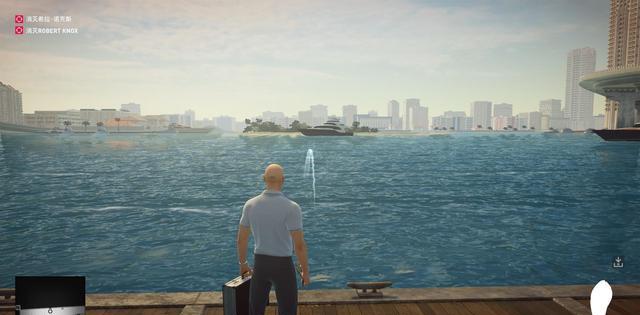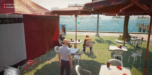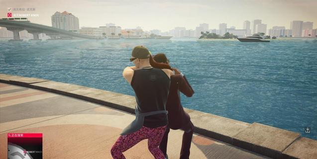 来到正在海边等待着罗伯特传召的经理,等罗伯特走到僻静之处时,先把一边倒霉的路人给砸晕,再将罗伯特给敲晕,获得伪装。这里记得两个尸体都要推下海或者推到一旁转角处,不然会被巡逻的保安发现。