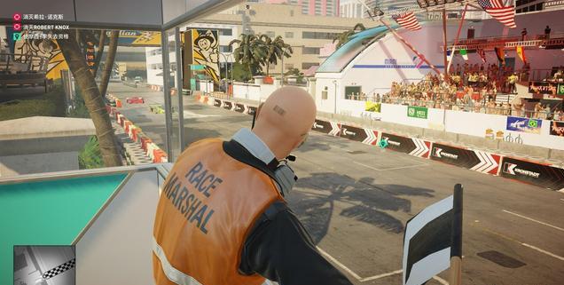 这里要求我们获得赛事工作人员的钥匙,大家在赛事的主要负责区域找个保安击晕即可获得。如果找不到也可以用我上图使用的方法。