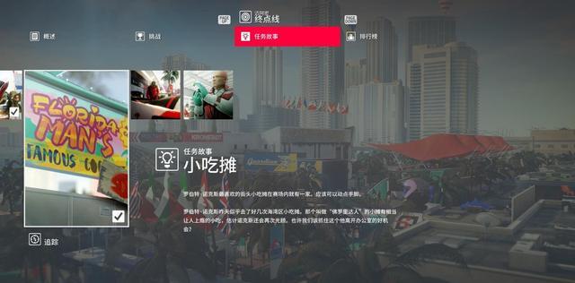 首先先来到了小吃摊前,这里提示我们要先找到佛里罗达人,去取得他们的伪装和钥匙。这里值得注意的是佛里罗达人的位置不是固定的,地图上也没有专门的标识。所以我们一定要记住在左上角佛里罗达人当前位置的画面,尽量记住再去寻找。经过多次sl读档反复研究,一般出现的位置是会在小吃摊的后面海边,并且一定会去在上图的位置钓鱼。如果实在找不到位置的话,就在这里守株待兔即可。
