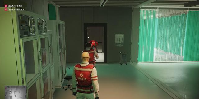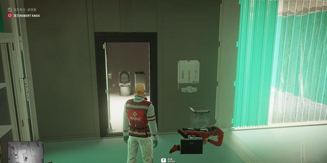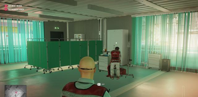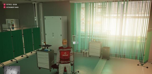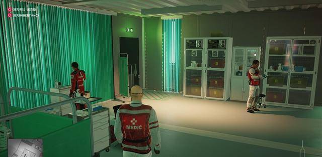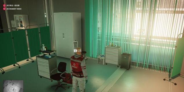 首先我们来到医务室,卡住医生视线的死角,将这个赛车手给击晕。
