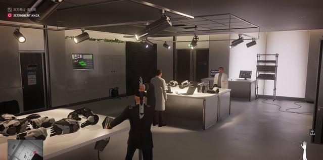 可以按照之前任务故事:新的敌人的打法,先化妆成国防顾问潜入,然后去到一旁的桌子上拿取机器人手臂,随便制服一个落单的研究员即可。(白衣服的即为研究员,只要砸晕即解锁挑战。)