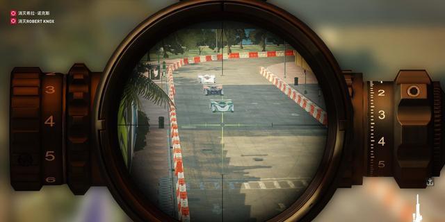 跟上面移动靶的打法如出一辙,等到有好几辆车连环经过时用狙击枪先将最前面的赛车给打下来,后面的赛车自然就会撞到前面的赛车上了。