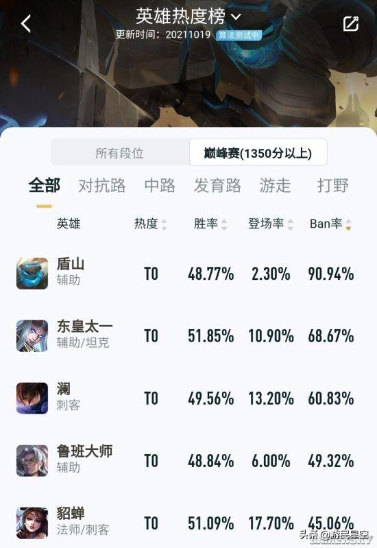 盾山以90.94%的超高Ban率位列ban率榜单第一位,可以说是“在Ban位买了房”的英雄。下面就给大家介绍一下盾山的玩法。