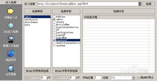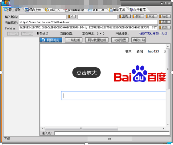 这个工具似乎前一阵在黑客内参论坛上见过,经试用,发觉这还是一个非常全面的优秀注入检测工具。从旁注查询、C段查询到后台扫描、MD5加密解密,再到批量注射点、批量扫后台等等功能,非常容易上手。以"批量注射点"为例,其中所列的"吸取旁注列表"、"吸取C段列表"和"外部导人列表"等很是人性化,注入的检测效率很高。惟一的缺点就是点击"关闭"按钮之后仍"赖"在"Windows任务管理器"中,需要手工结束其进程。