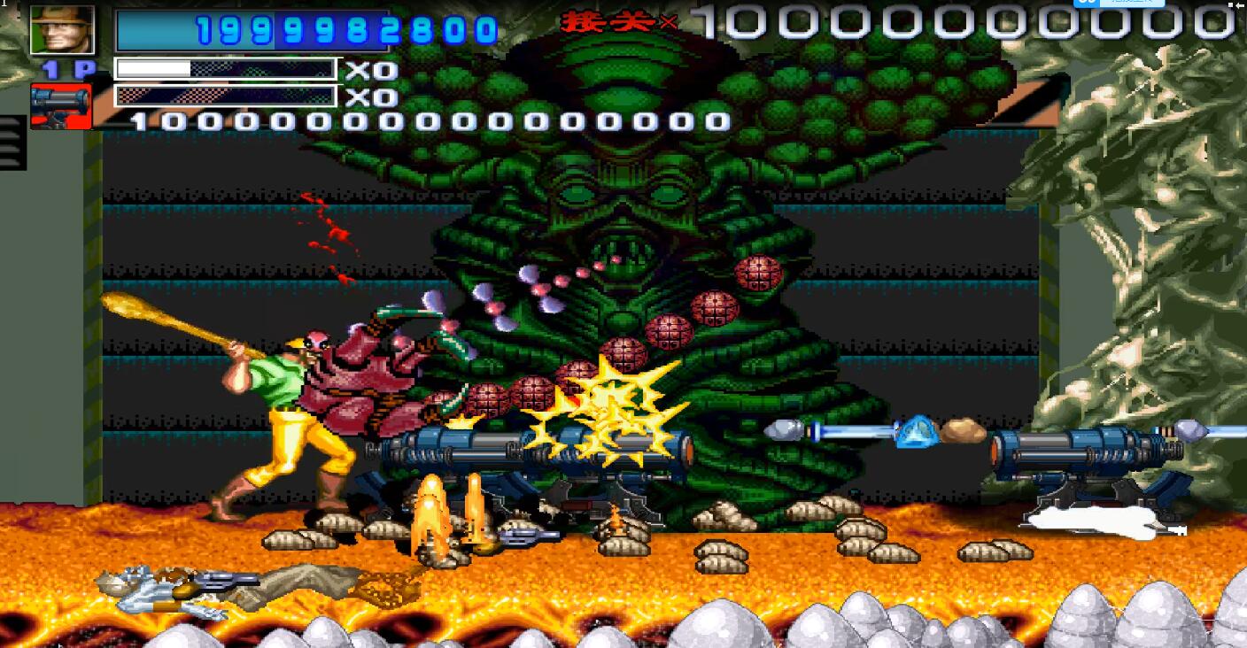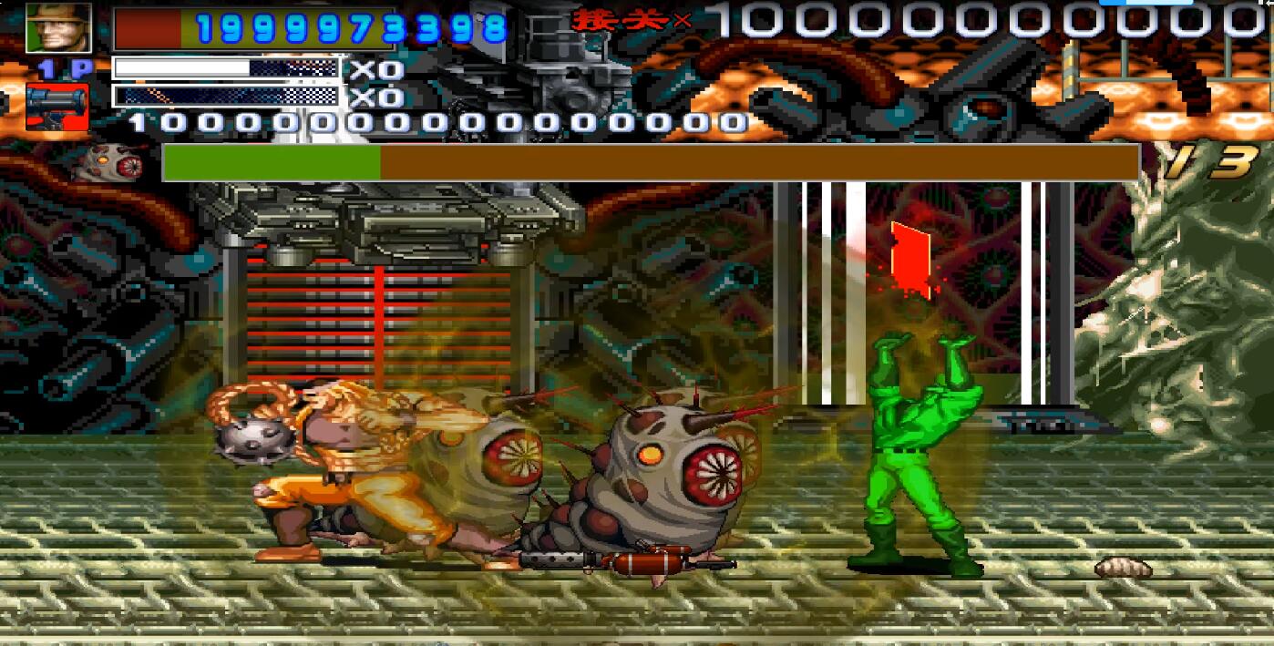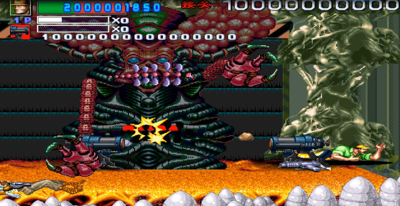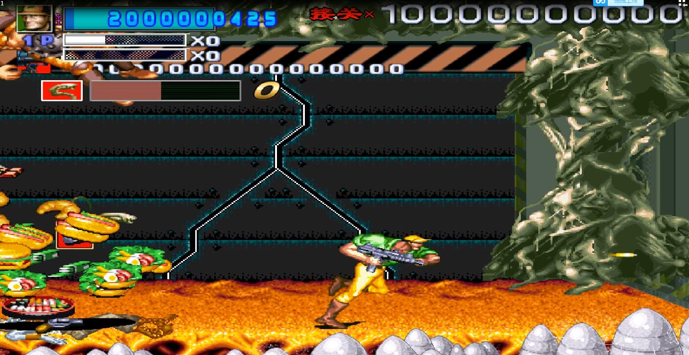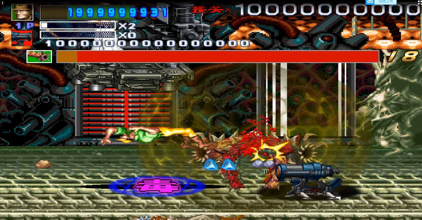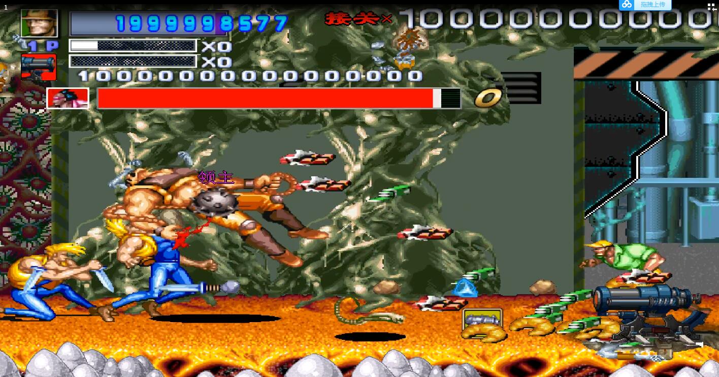 突然大BOSS出现了,是的,这个BOSS看起来真的是眼熟,对的,它就是魂斗罗里的关底,有两个可以任意摇摆的大爪子,不停的在攻击我,无耐之下,我使出了我最喜欢的道具,地下城里的机关炮,相信很多人此时会说,这是什么东东,对不起就是这样的,小编如果不是之前玩过这个游戏肯定也会把下巴惊掉。