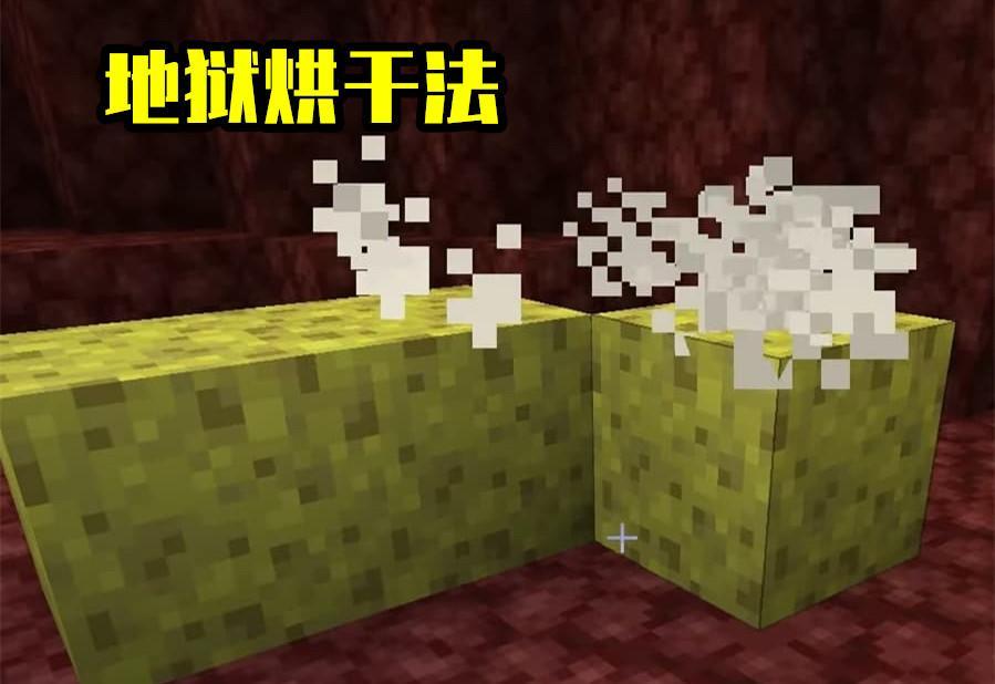 4、地狱除水法;目前全版本通用的两种“烘干”海绵的办法:其一,熔炉烘干法;其二,地狱烘干法,因地狱无法存水。湿海绵会在接触地狱维度地面的瞬间被烘干!