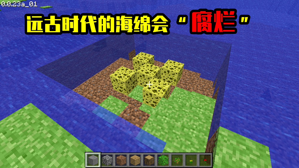 7、最初的海绵会腐烂;Notch听从玩家建议,于是在09年0.0.19a初代的海绵可以吸走5*5*5空间的水,但同时海绵也会开始逐渐腐烂,直至消失。(这个设定很科学,湿海绵腐烂,干海绵可以阻止腐烂)