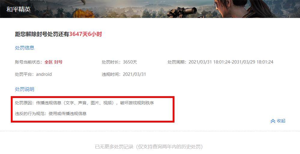 大致的时间,大家可以查看一下,游戏结束的时间与封号的时间,进行对比一下。
