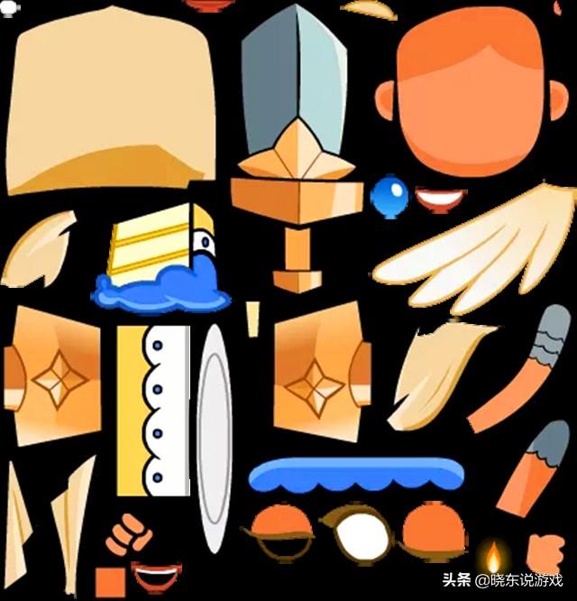 第一个是战斗天使的素材,印象中应该算是在游戏中的首次出现吧,天使翅膀、阔剑,还有盔甲全都在,不一样的是,素材里面还有切开的小块蛋糕、圆盘和一个蛋糕圆形纸盒子。如果合到一起的话,晓东觉得应该是战斗天使在吃蛋糕,如果再加上丰富的表情和语音的话,相信会有一定的嘲讽力度的。