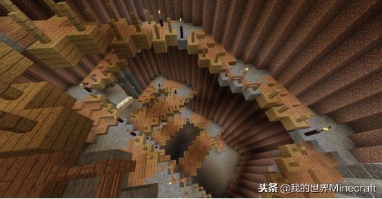 城堡一般都是多层结构,所以楼梯的结构也是非常重要的,并且楼梯的承重一定要做好,像这位玩家在设置楼梯的时候,就在中间有悬梁支撑,这可以有效的提高安全性。