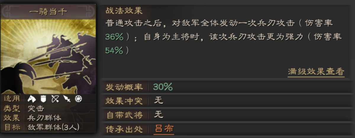 在普通攻击后,有概率触发突击战法,在每回合战斗中,可以触发多个突击战法,达到高额输出,例如一骑当千,暴戾无仁,在缴械,震慑状态下,无法发动。