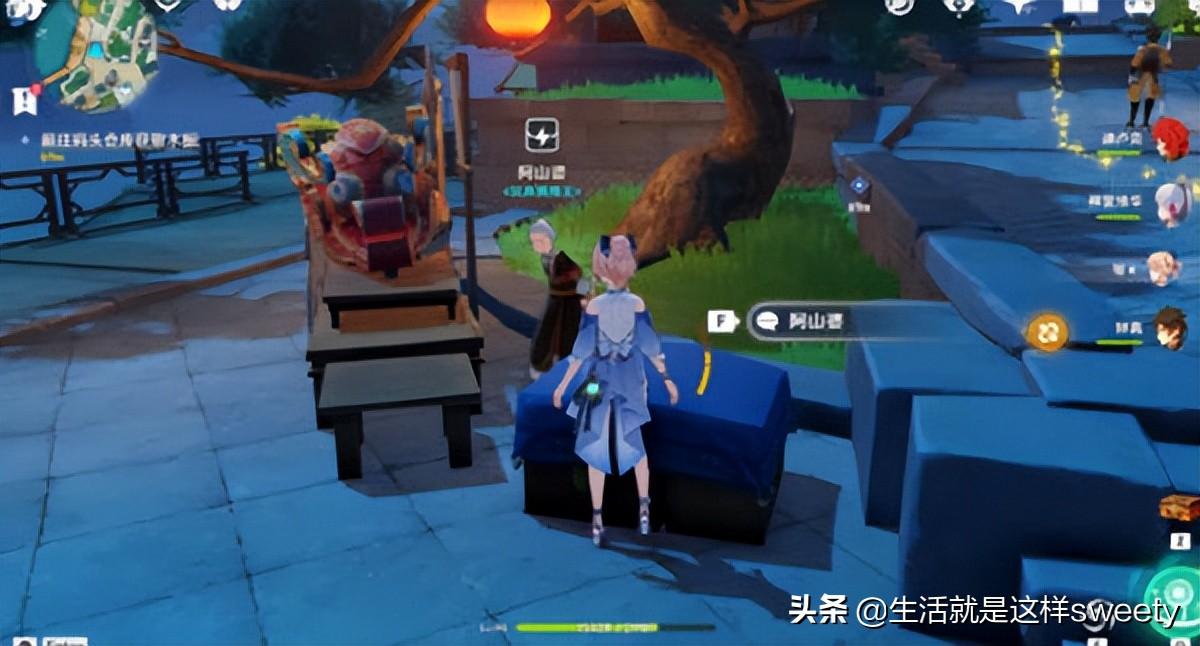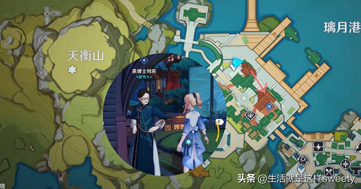 2、顺路完成2.7的新任务的时候我们在台上台下,直接到璃月图中地点接取就好了,然后在任务中我们会路过阿山婆这里,就是之前卖风筝的老婆婆这里,然后我们可以在这里直接进行购买,如图所示。