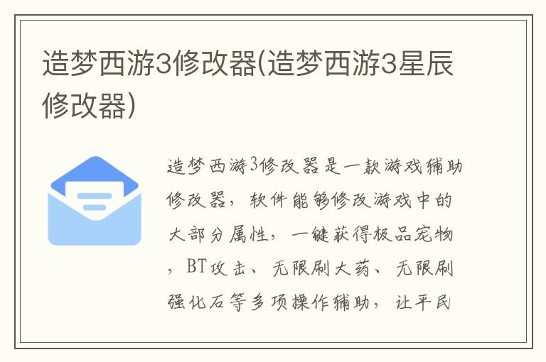 造梦西游3修改器功能介绍(造梦西游3星辰修改器能干嘛)