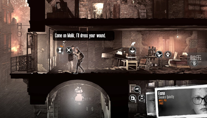 进入游戏后,玩家很快能接触到全新的角色属性——残疾。作为第二章女主角Esma的丈夫、广播的发声人,Malik是一位残疾人,他只能在家中行动,虽然能完成所有成年人的工作,但不能切换楼层,并且因拄拐行走而移动速度迟缓,当然也无法离家外出拾荒。