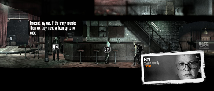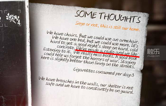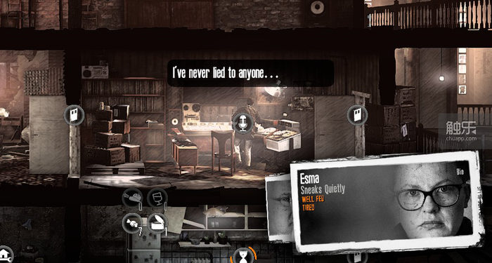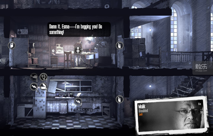 然而在玩家的体验中,这个效果很难达到。Esma全程都在照顾Malik,给吃给穿打理全家不说,还要冒死给Malik找新闻,不然连续两三天没新闻放,他就会沮丧闹脾气。从玩家角度看,Malik就像《冰汽时代》里那些刁民一样毫无道理,因而多少也达成了《冰汽时代》中的那种制作组可能并不想要的反效果——想让玩家感受军方之恶,却反而让亲身体验的玩家可能对之抱以同情。11 bit studios,你们当真不是反串,在暗黑广播人或残疾人吗?