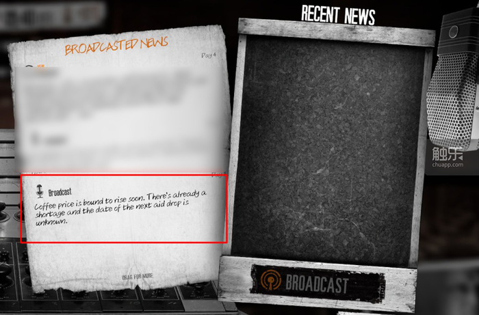 还比如,结局分支之一是通过码头逃离战争,而码头恰是《周年版》新增的结局方式;还比如广播的内容,有些就是本篇里大家耳熟能详的“咖啡涨价”等等,这些内容不仅复用到了设计当中,还完全串接本篇,继承了本篇的精神内核,极大拓展了剧情和背景的涵盖面。
