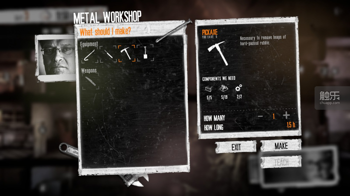 基于这个限制,为避免玩家一个外出场景跑4趟,影响游戏流畅度,这种现场仅在能恢复角色疲惫值的家中才有(全篇里一共就两个)。由于《广播》中上门商人不提供基础素材,导致镐头制作有一定成本,使它的存在非常尴尬,并没有因相应的新鲜感带来多少满足。