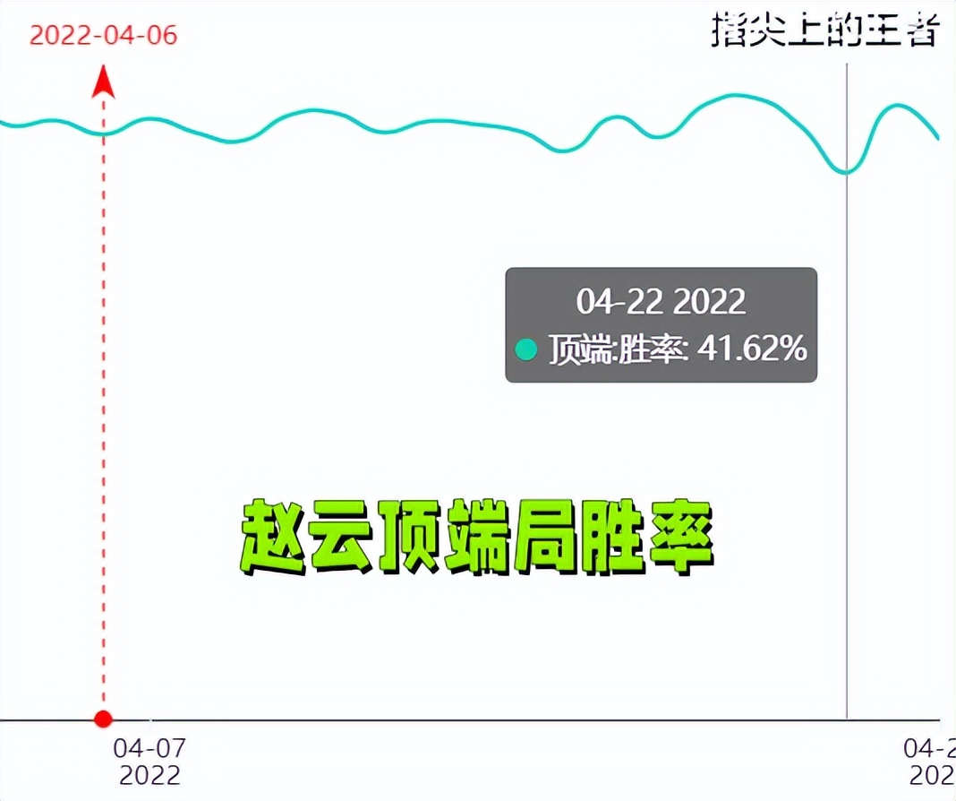 从苏苏的荣耀助手中我们可以看到,赵云在顶端局的胜率始终在44-46%左右徘徊,最低的时候已经跌到了41%,始终是排名垫底的打野英雄,出场率更是一落千丈,现在的赵云在顶端局已经成了冷门打野,出场率仅仅4%。