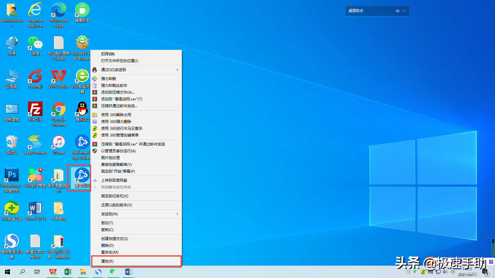 第二步,在桌面上找到暴雪战网软件图标,然后按下鼠标右键,在弹出的选项中选择【属性】功能。