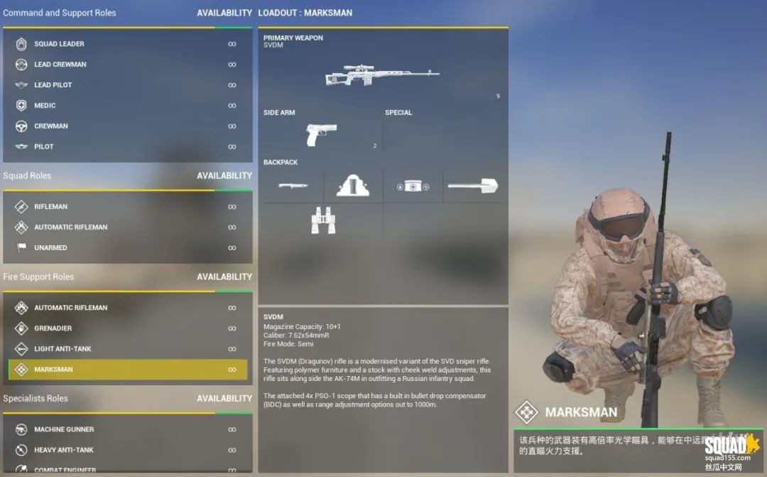 虽然每个阵营都有着诸如小队长、医疗兵、步枪兵、反坦克兵、精确射手、坦克手或飞行员,等职责角色。每个角色的外观基本上都能从外观看出差别: