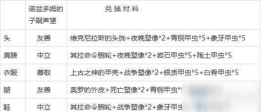 战士兑换材料一览