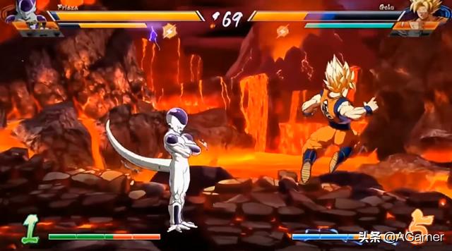 《龙珠斗士Z》在战斗方面是比较传统的2D格斗,可以粗略理解成《拳皇》《街霸》那种,不过角色是可以升级的,还有就是3V3对战会涉及换人时的连段攻击,整体对战节奏比较快,在各种特效加持下显得非常刺激。