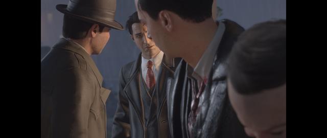 那么我们继续聊之后的细节,和其他两部作品相比,这一部重置版因为其单一的主线造就的劣势过大,其他两部作品一个使用完全开放的世界,玩家可以暂且放弃主线剧情,尽情地在这个世界将其他帮派搞的天翻地覆,虽然由于重复度过高导致这个环节枯燥乏味,而一代中虽然同样是单线剧情,但剧情中我们会逐渐了解维托内心上的挣扎,他从渴望发财,到希望保护家人,再到渴望拯救兄弟中不停沉浮,他的让步没有带来任何好处,只能继续将他扯进深渊,这从另一方面也极其容易引起我们的深思,而到了这一代,主角汤米完全就是为了至一口气加入的黑帮,他没有经济负担,有的选择,小人物的生活方式在他身上展现得淋漓尽致,他会为遇到出手大方的顾客而洋洋得意,也会为经济萧条,没有生意而暗自苦恼,他不像维托从战场上刚回来,又有债务危机,迫不得已走上犯罪的道路,而这一刻我似乎又看到了第三代的老毛病,人物的思维方式无法顺利的传达给玩家。也因此,我将这份剧情比作没有前菜的家常打卤面,味道不错,令人食欲大开,但缺少细腻的味道,三下五除二吃下肚,往往没有任何留恋的想法。