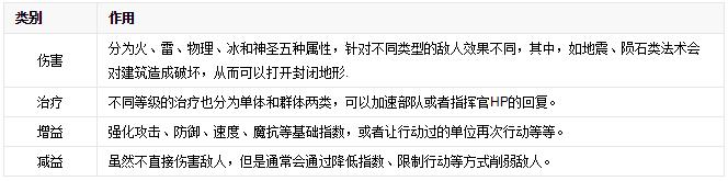 魔法是指挥官达到一定等级之后学习的主动释放的技能,使用后会消耗MP。从作用方式上来看可以分为伤害、治疗、增益和减益四个大类,而从作用对象上则可分为单体和群体两类。我认为作用最大的魔法类型应该是治疗和增益类型,因为就算你全身上下999,掉了一滴血之后就不能秒杀对方了,而且最变态的是很多魔法的释放距离非常远,堪称地图炮!转职时尽量多学魔法技能!