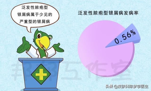 泛发性脓疱型银屑病属于少见的严重型的银屑病,据国内上海华山医院统计,发病率占所有银屑病的0.56%。