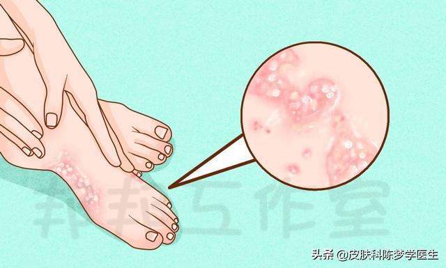 一种叫掌跖脓疱病,指的是脓疱局限于手掌的大小鱼际,足跖、足底、足侧缘、足跟后面等处,往往对称分布;可伴或不伴有躯干部典型的斑块状银屑病的皮损;