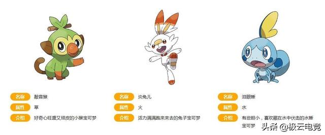 在伽勒尔地区展开全新的冒险之前,主角将从这3只宝可梦中选择自己最初的伙伴。