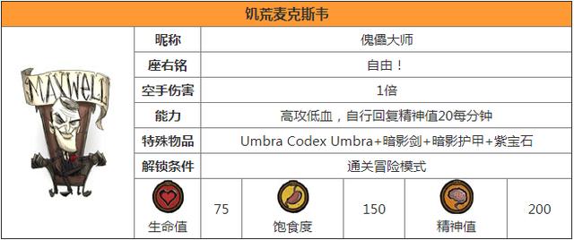 一、饥荒角色麦克斯韦攻略详解: