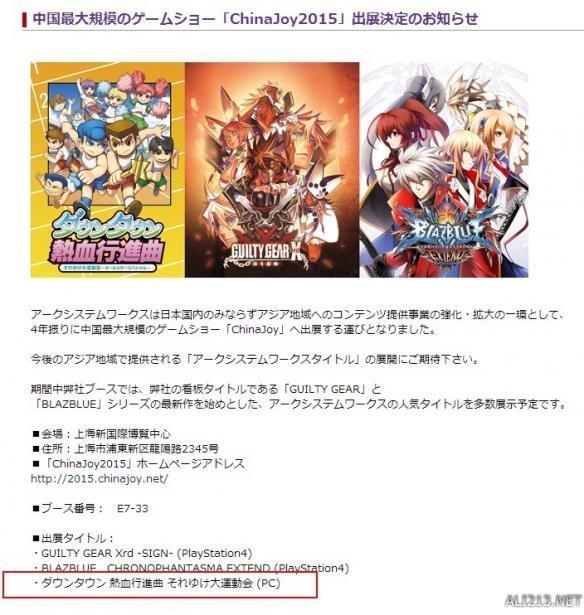 《热血进行曲:运动会》已经在2015年3月登陆了PS3平台,作为一款经典游戏,虽然只是登陆PS3平台,但还是被很多玩家津津乐道,令人意外的是,在游戏发行了几个月之后,更为重磅的消息来了,那就是《热血进行曲:运动会》将登陆PC平台,有趣的是,这条消息居然是从Arc System Works将要参展ChinaJoy 2015的声明上爆出来的。