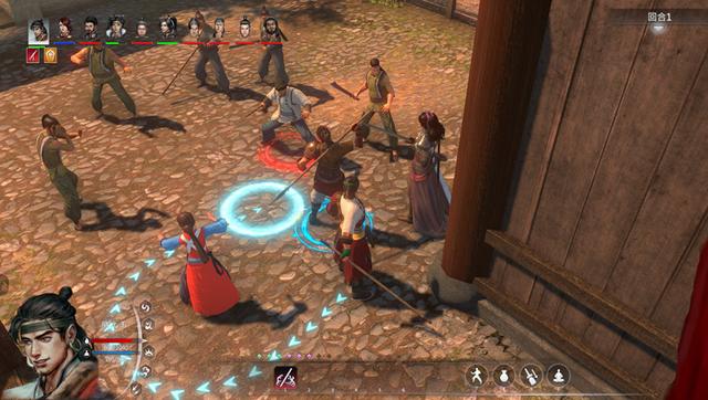 首先一个就是本作的战斗系统不尽如人意。相比过去《金庸群侠传》走格子的棋盘式回合制,《河洛》选择了近似于《神界:原罪2》的 AP 点资源型回合制。玩家不管是发招、移动、使用道具还是更换武器均需要消耗 AP 点数。这就使得整个战斗环节都在围绕 AP 点的使用、储蓄、增长而运作。