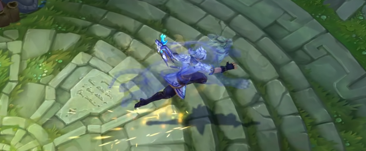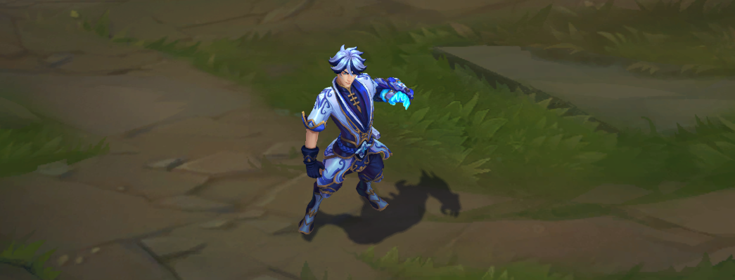 EZ的这款皮肤应该是目前整个系列里质量最高的一款,整体蓝白色的造型与青花瓷的主题相得益彰,左手的虎形拳套也是颇具质感,因为是一款T2级别的皮肤,所以他拥有专属的语音,并且还拥有独特的动作,那就是来一段音乐,《青花瓷》伴奏。