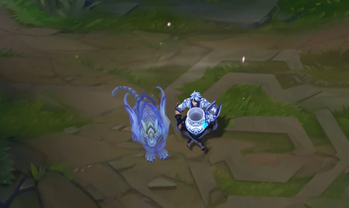 从特效展示来看,EZ这款皮肤的很多技能特效都有这支老虎的存在,它就像是封印在拳套里的虎灵一样,并且在拥有家园卫士效果时,虎灵也会有一段特效。