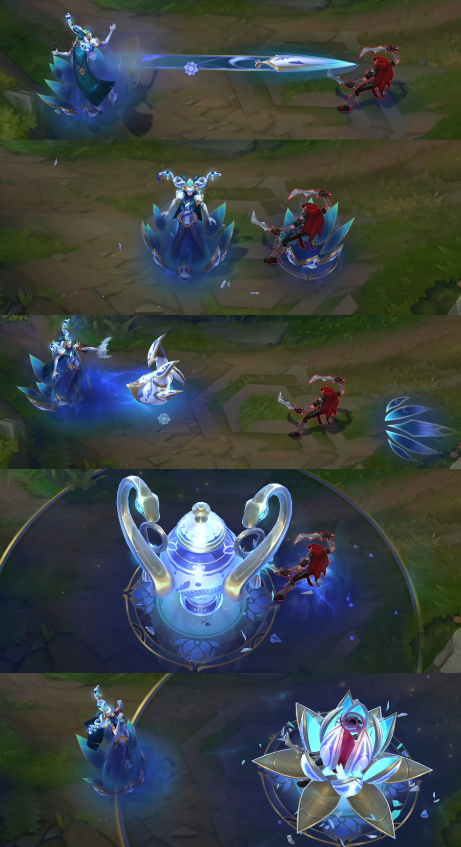 如此青花瓷的设计也终于在游戏里得以呈现,12.2版本更新的这个系列势必将成为焦点,那么这套系列皮肤究竟质量如何呢?