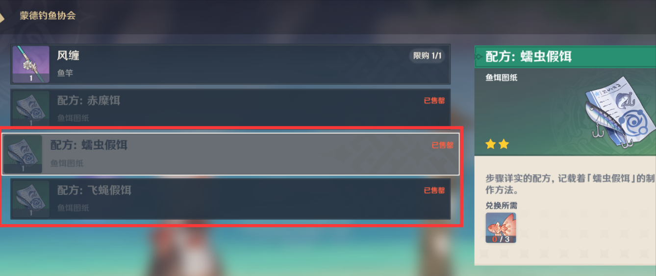 首先去蒙德钓鱼协会获取蠕虫假饵和飞蝇假饵配方。
